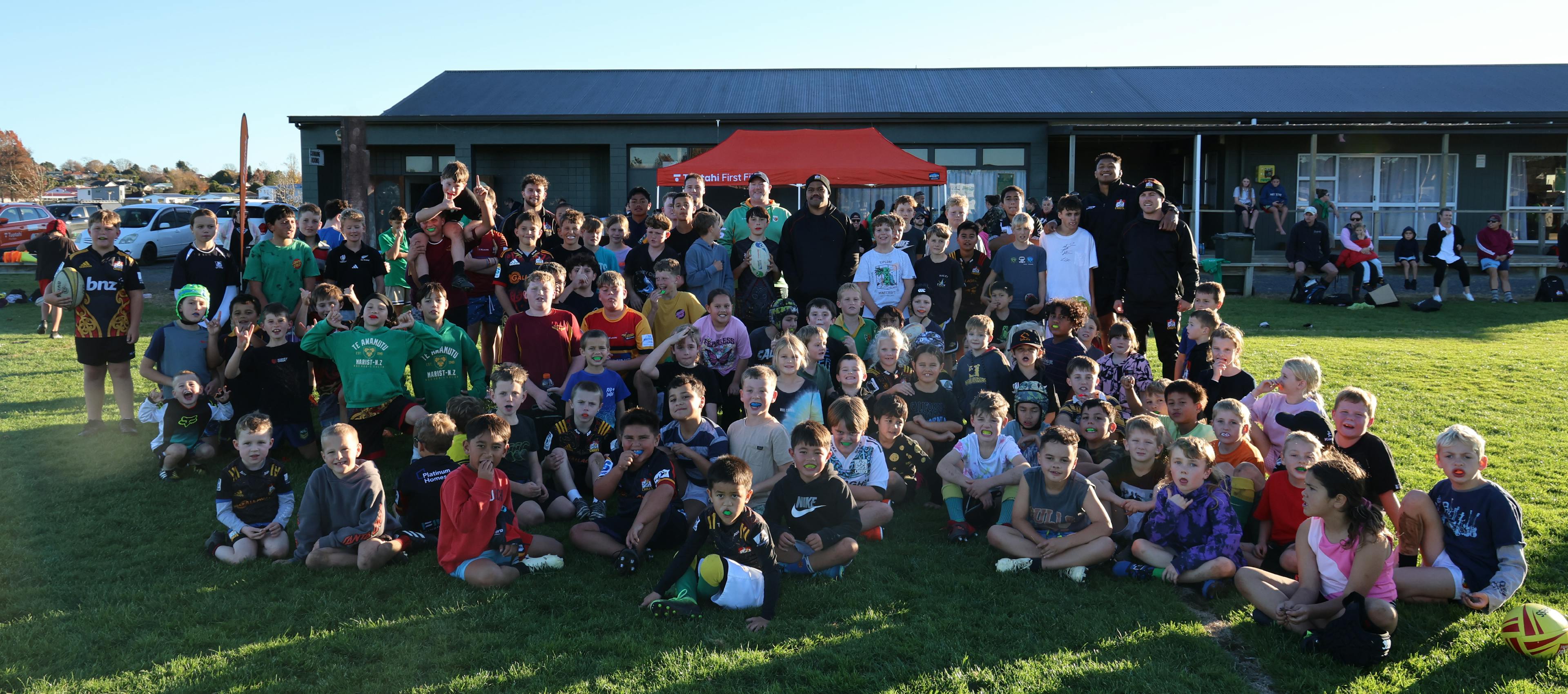 Ranging in age from just three to 12 years old, the junior players were excited to hit the field with the Chiefs players. The Chiefs also signed posters and handed out Tuatahi First Fibre beanies, t-shirts, and temporary tattoos.