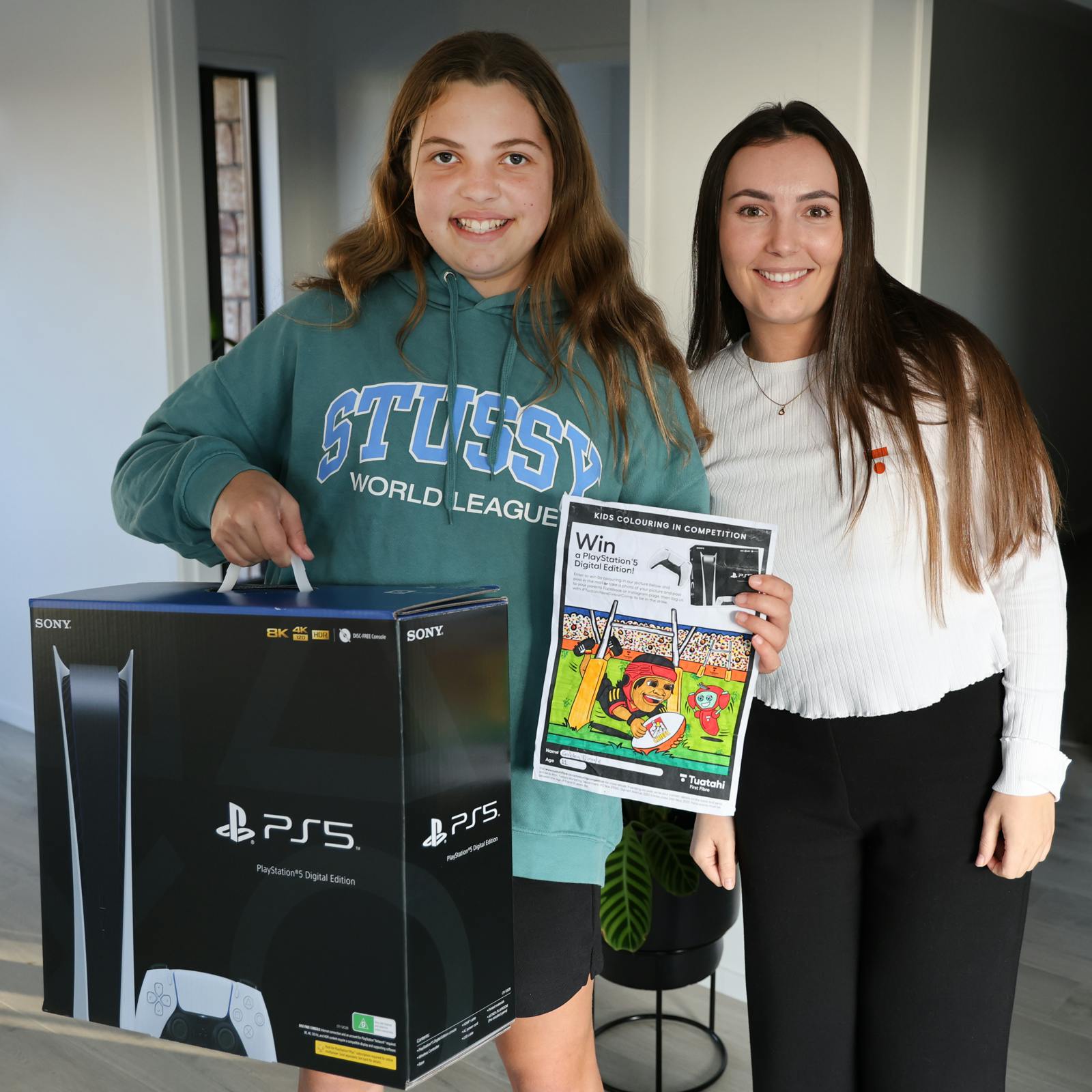Claire Williams from our marketing department here at Tuatahi First Fibre personally delivered a PlayStation 5 Digital Edition to Gabby's doorstep, surprising her and her ecstatic brother.